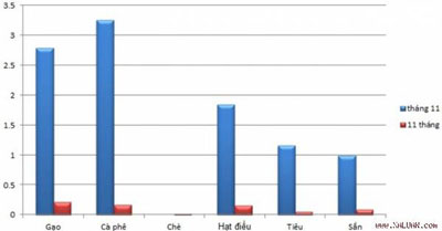 Cùng nhìn lại hoạt động xuất khẩu của 6 mặt hàng nông sản tỷ USD: Gạo, cà phê, chè, hồ tiêu, hạt điều, sắn trong 11 tháng năm 2014.