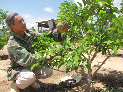Thăm rẫy mãng cầu dai của gia đình ông Phú, chúng tôi không khỏi ngạc nhiên biết hàng trăm cây mãng cầu mới cao ngang thân người đã cho trái. Chỉ trái mãng cầu vừa căng mắt, xanh phớt, ông Phú vui vẻ cho biết, nhờ áp dụng khoa học kỹ thuật nên trái mãng cầu nhà ông không bị bám muội, bán được giá; rẫy mãng cầu cho trái đều đều 3 tháng/vụ. Lứa trái trước vừa thu hoạch, ông lại áp dụng các biện pháp kỹ thuật để cây ra lứa hoa mới, đồng thời chăm sóc phục hồi cây trồng. Vì thế mới trồng 2 năm, rẫy mãng cầu đã cho thu 110 triệu đồng. Bên cạnh đó, rẫy xoài cát Hòa Lộc mà ông chuyển đổi trồng 4 năm qua cũng cho thu hơn 300 triệu đồng. Tết vừa qua, xoài trái vụ cho thu nhập 55 triệu đồng.