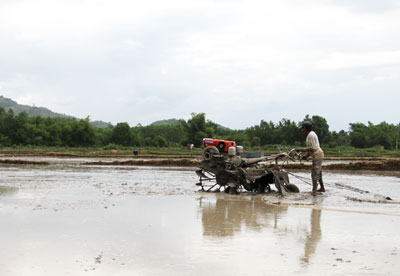 Cách đó không xa, trên mảnh ruộng 1,2 sào của gia đình, chị Cao Mướp đang chờ máy cày làm đất xong để gieo sạ lúa cho vụ mùa mới. Chị vui vẻ trò chuyện: “Mấy năm gần đây, hạn hán kéo dài, rẫy chuối của gia đình luôn mất mùa, nhờ có ruộng lúa này mà gia đình cũng đủ ăn, không lo đói như trước...”. Dứt câu chuyện với chúng tôi cũng là lúc chiếc máy cày hoàn thành phần việc ở mảnh ruộng của gia đình chị Mướp. Chị hối hả lấy bao lúa giống đã được chuẩn bị để gieo sạ...