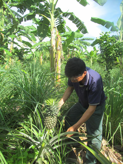 Theo ông Nhãn, dứa Cayenne dễ trồng, chỉ cần đất ẩm là cây lên nhanh, không cần bỏ phân, xịt thuốc. Cây dứa sau 8 đến 12 tháng có thể cho trái, quả nặng từ 1,5 - 4kg. Hiện tại, giá thu mua của thương lái tại vườn là 5.000 đồng/kg, nếu đưa tới các chợ lớn ở TP. Nha Trang có giá 6.000 - 7.000 đồng/kg. Với 1ha dứa xen canh, ông Nhãn thu được khoảng 20 triệu đồng và dự kiến còn thu thêm 40% nữa (tương ứng khoảng hơn 30 triệu đồng/ha). Đó là chưa kể nguồn thu từ cây sả, chuối và chồi giống dứa với giá hiện nay là 2.500 đồng/chồi.