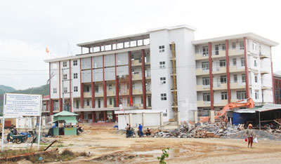 | Trường Chính trị tỉnh đang được xây dựng tại khu vực Hòn Rớ, xã Phước Đồng (TP. Nha Trang) là một trong những dự án được triển khai theo hình thức “đổi đất lấy hạ tầng” |
