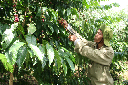 | Nông dân Khánh Sơn thu hoạch cà phê |