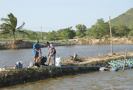| Lắp quạt nước cho ao nuôi tôm vào mùa mưa |