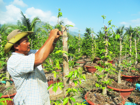 Tác giả của giải pháp cải tiến kỹ thuật ghép mai cảnh là nông dân Phạm Văn Đông (phường Phước Hải, TP. Nha Trang). Hiện nay, vườn mai của ông Đông tại thôn Dầu Sơn, xã Suối Tân (huyện Cam Lâm) có hàng ngàn cây mai cảnh. Từ những cây mai già cỗi, bị lãng quên trong các vườn, ông Đông đã mua về chăm bón, phục hồi và làm đẹp bằng cách ghép thêm bộ cánh mới.