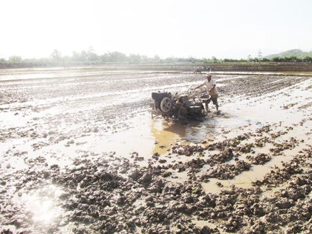 | Làm đất chuẩn bị xuống giống tại xã Diên Bình (huyện Diên Khánh) |