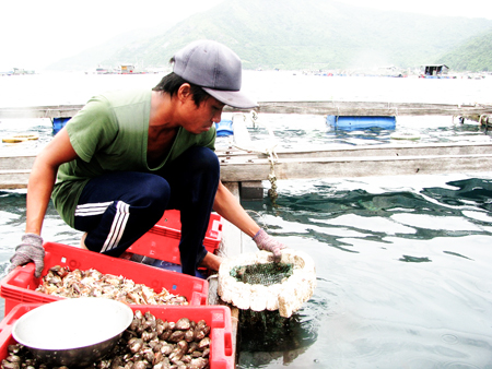 | Chăm sóc tôm hùm ở xã đảo Cam Bình |
