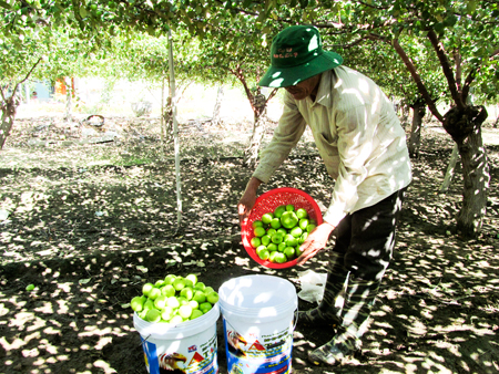 Năm nay, nông dân xã Cam Thành Nam (TP. Cam Ranh) thất thu táo bởi hạn hán kéo dài và nạn ruồi đục trái hoành hành. Tuy giá táo đầu vụ cao (7.000 - 9.000 đồng/kg) nhưng với năng suất thấp, nhà vườn cũng khó thu hồi vốn.
