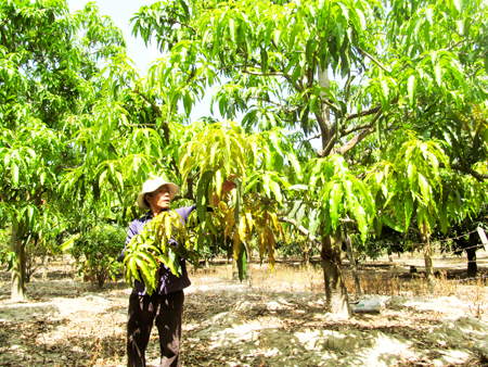 Với thổ nhưỡng và nguồn nước thích hợp, nông dân xã Suối Tân (huyện Cam Lâm, Khánh Hòa) đang phát triển mạnh giống xoài Tứ quý sản xuất trái vụ.
