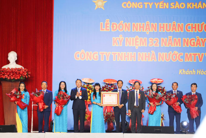 Sáng 9-11, Công ty TNHH Nhà nước Một thành viên Yến sào Khánh Hòa (Công ty Yến sào Khánh Hòa) đã tổ chức Lễ đón nhận Huân chương Lao động và kỷ niệm 32 năm ngày thành lập công ty (9-11-1990 - 9-11-2022).