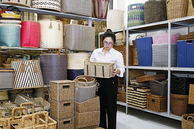 Các sản phẩm được làm thủ công từ nguyên liệu thân thiện môi trường của hợp tác xã. |