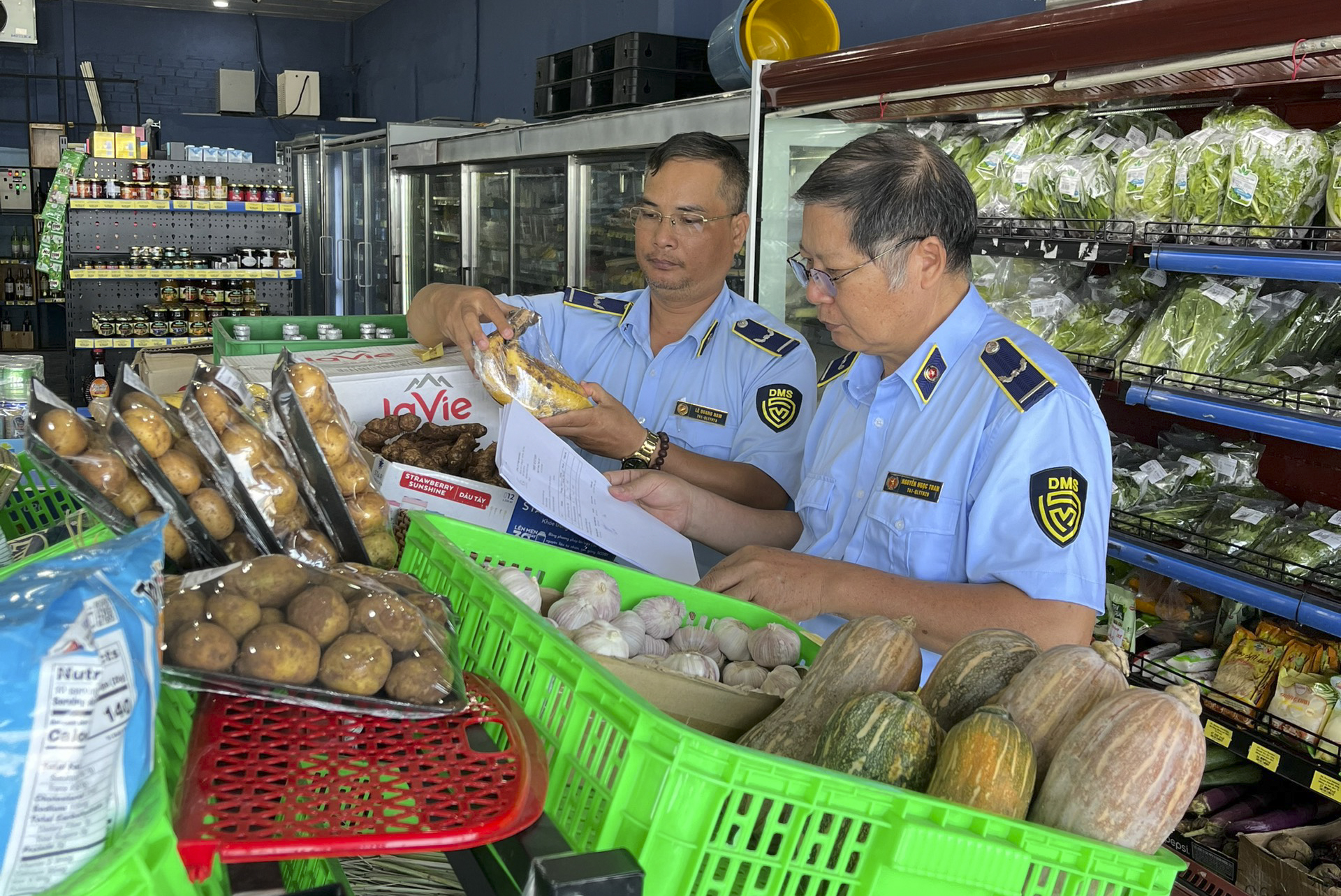 | Lực lượng quản lý thị trường kiểm tra hàng hóa tại cơ sở kinh doanh trên đường Phạm Văn Đồng, TP. Nha Trang. |