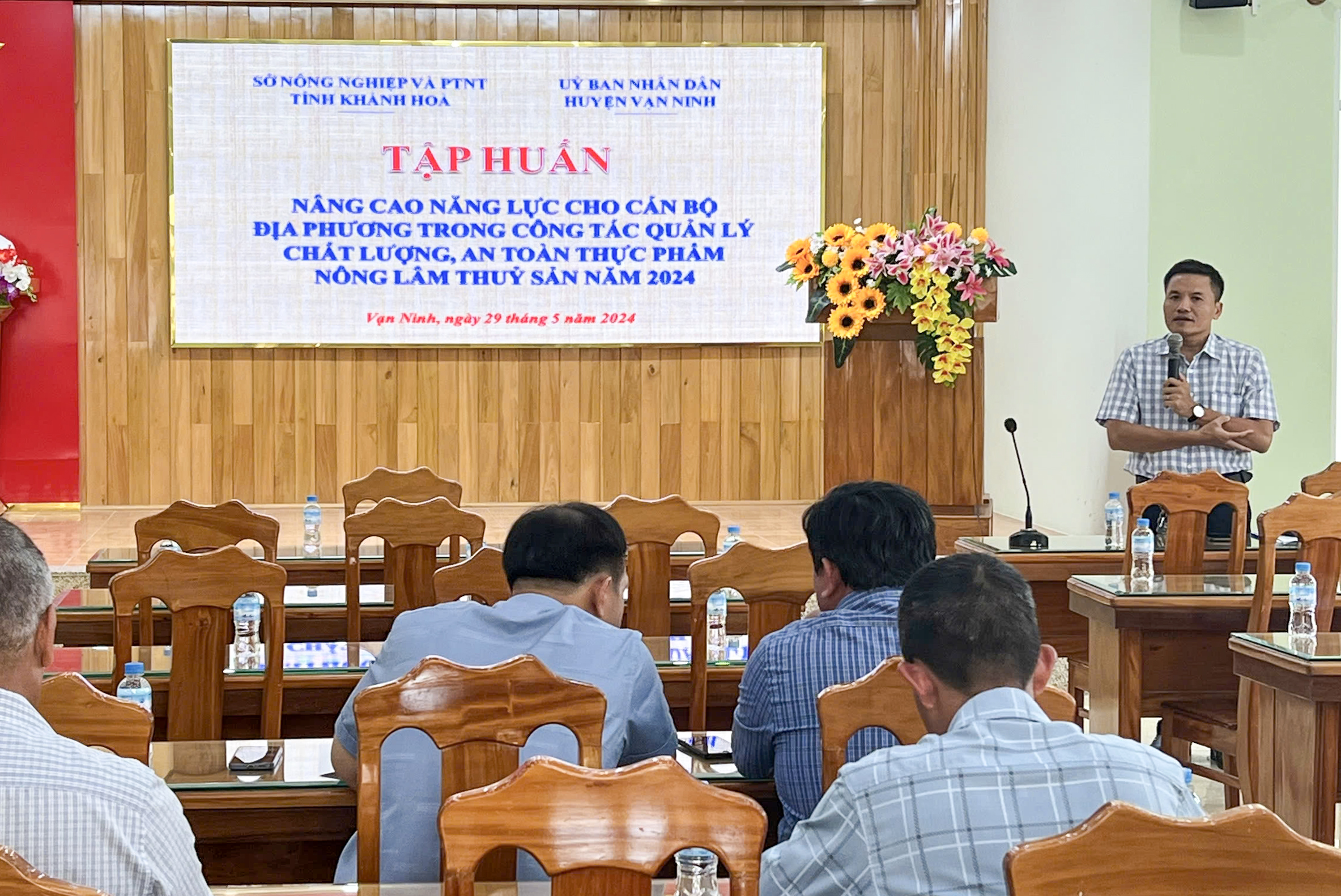 Theo đánh giá của Chi cục Quản lý chất lượng nông lâm sản và thủy sản Khánh Hòa, nhìn chung, các đơn vị cấp xã đã triển khai thực hiện tốt việc phân cấp quản lý. Tuy nhiên, đây là một nội dung còn tương đối mới, đòi hỏi cần thời gian và sự chuyển biến. Do đó, chi cục đã đẩy mạnh việc đào tạo, nâng cao năng lực cho cán bộ địa phương trong công tác quản lý chất lượng, ATTP nông lâm thủy sản. Trong đó, riêng năm 2024, nhằm nâng cao năng lực trong công tác quản lý chất lượng, ATTP nông lâm thủy sản và hướng dẫn địa phương thực hiện các chỉ tiêu thuộc Bộ tiêu chí nông thôn mới cho cán bộ phụ trách tại các xã, phường, thị trấn trên địa bàn toàn tỉnh, chi cục đã phối hợp với UBND các huyện, thị xã, thành phố tổ chức 8 lớp đào tạo nâng cao năng lực với 202 cán bộ tham gia, hoàn thành 100% kế hoạch. Đồng thời, tổ chức 12 lớp tập huấn, phổ biến kiến thức về ATTP cho các cơ sở sản xuất, kinh doanh thực phẩm nông, lâm, thủy sản trên địa bàn toàn tỉnh với 640 lượt người tham gia, hoàn thành 100% kế hoạch. Ngoài ra, chi cục còn phối hợp với các địa phương tổ chức treo 200 tờ phướn dọc, tuyên truyền tại các tuyến đường chính trên địa bàn tỉnh nhằm tuyên truyền, nâng cao ý thức của người sản xuất cũng như người tiêu dùng trong việc lựa chọn thực phẩm an toàn.