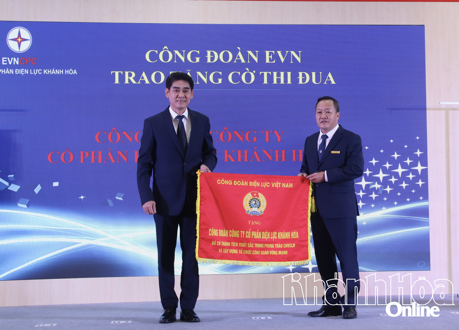 | Công đoàn Tập đoàn Điện lực Việt Nam tặng cờ thi đua cho Công đoàn Công ty Cổ phần Điện lực Khánh Hòa. |