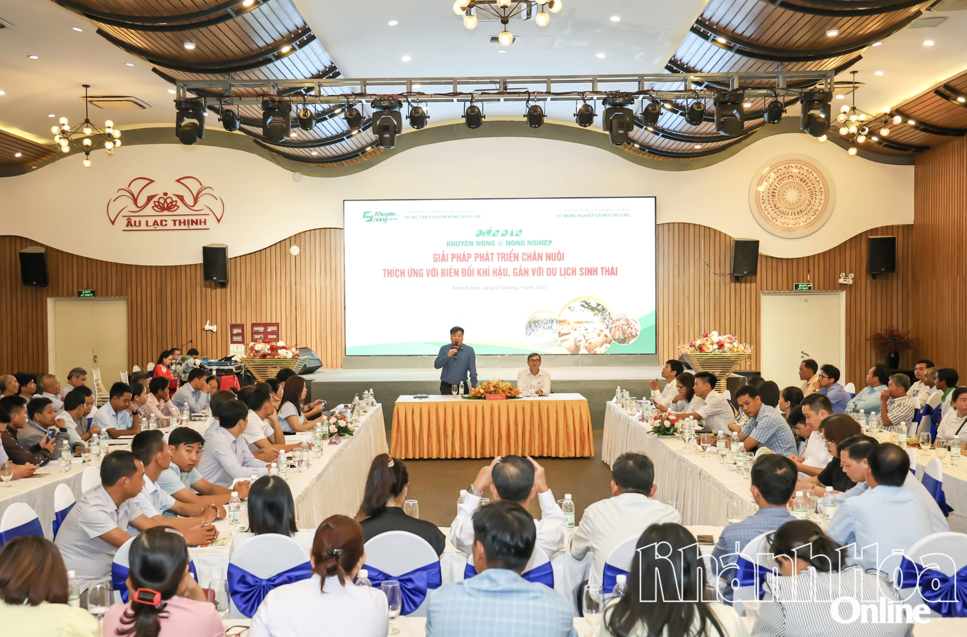 Ngày 21-7, Trung tâm Khuyến nông Quốc gia phối hợp với Sở Nông nghiệp và Môi trường Khánh Hòa tổ chức diễn đàn “Giải pháp phát triển chăn nuôi thích ứng với biến đổi khí hậu, gắn với du lịch sinh thái.” Ông Lê Quốc Thanh - Giám đốc Trung tâm Khuyến nông Quốc gia; lãnh đạo Văn phòng Điều phối Nông thôn mới Trung ương, Viện Khoa học phát triển nông thôn, Tổ chức hợp tác Quốc tế Đức (GIZ) và hơn 200 đại biểu là cán bộ khuyến nông, nông dân của 4 tỉnh: Khánh Hòa, Gia Lai, Lâm Đồng và Đắk Lắk tham dự.