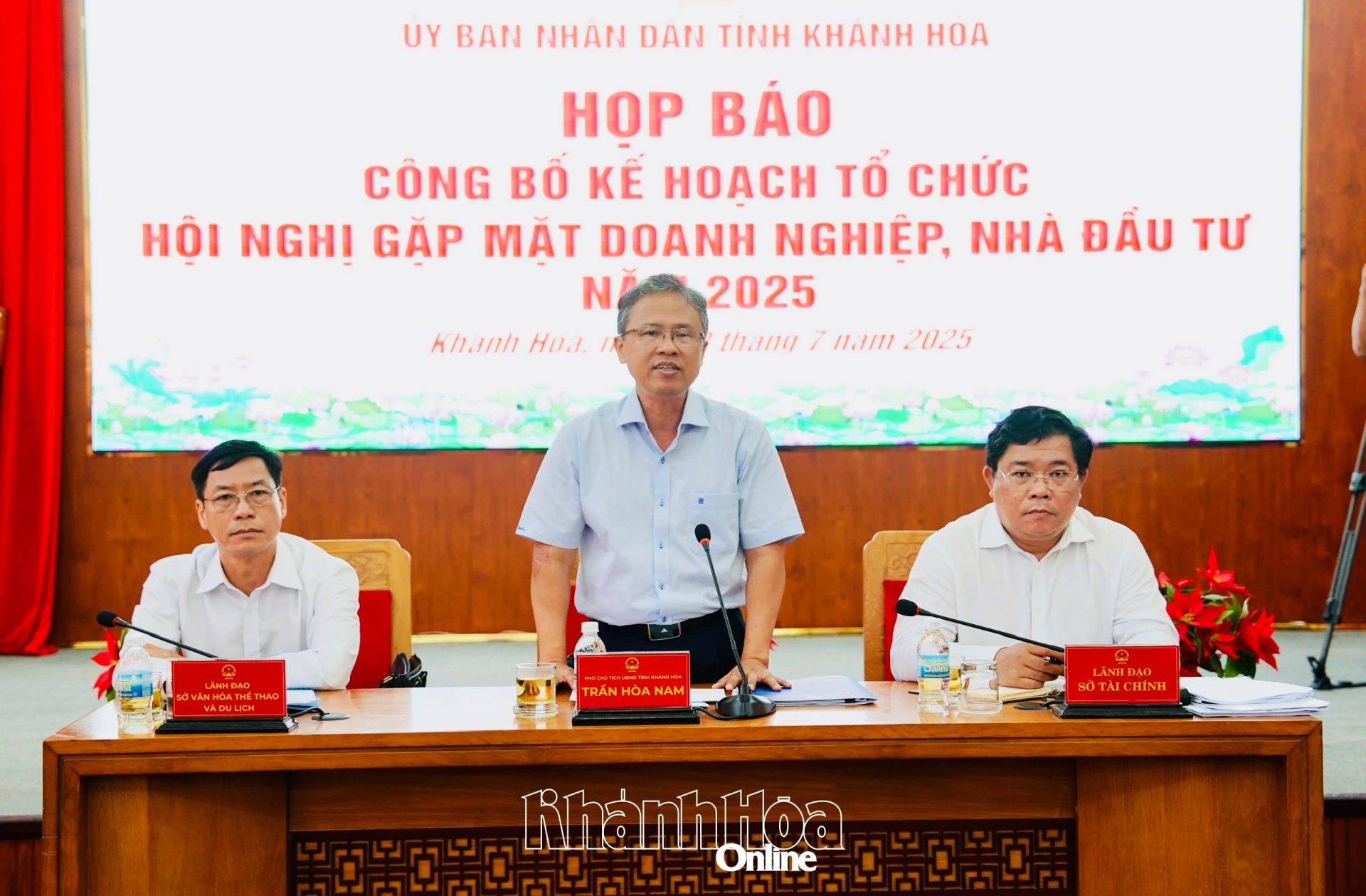 Sáng 22-7, ông Trần Hòa Nam - Phó Chủ tịch UBND tỉnh Khánh Hòa chủ trì họp báo công bố kế hoạch tổ chức Hội nghị gặp mặt doanh nghiệp, nhà đầu tư năm 2025.