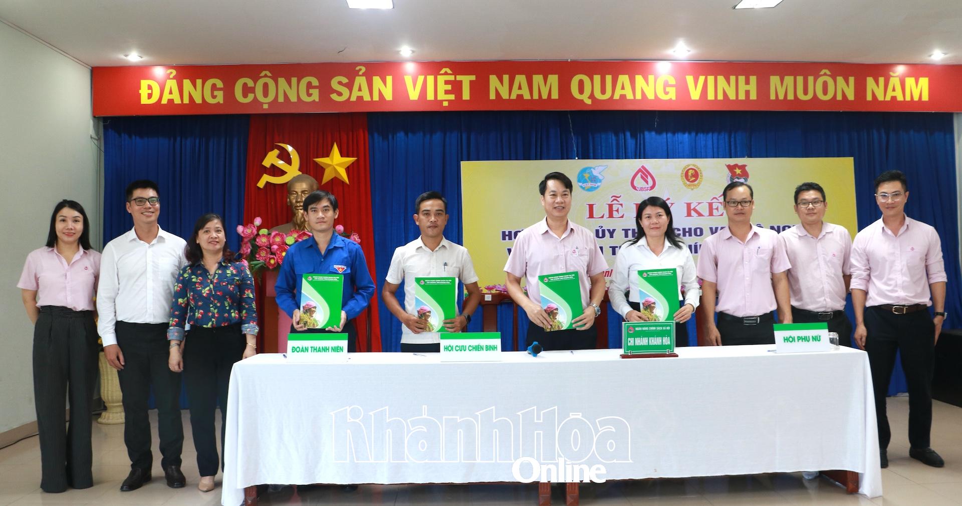 | Đại diện Ngân hàng Chính sách xã hội tỉnh ký kết hợp đồng ủy thác với hội, đoàn thể phường Nam Nha Trang. |