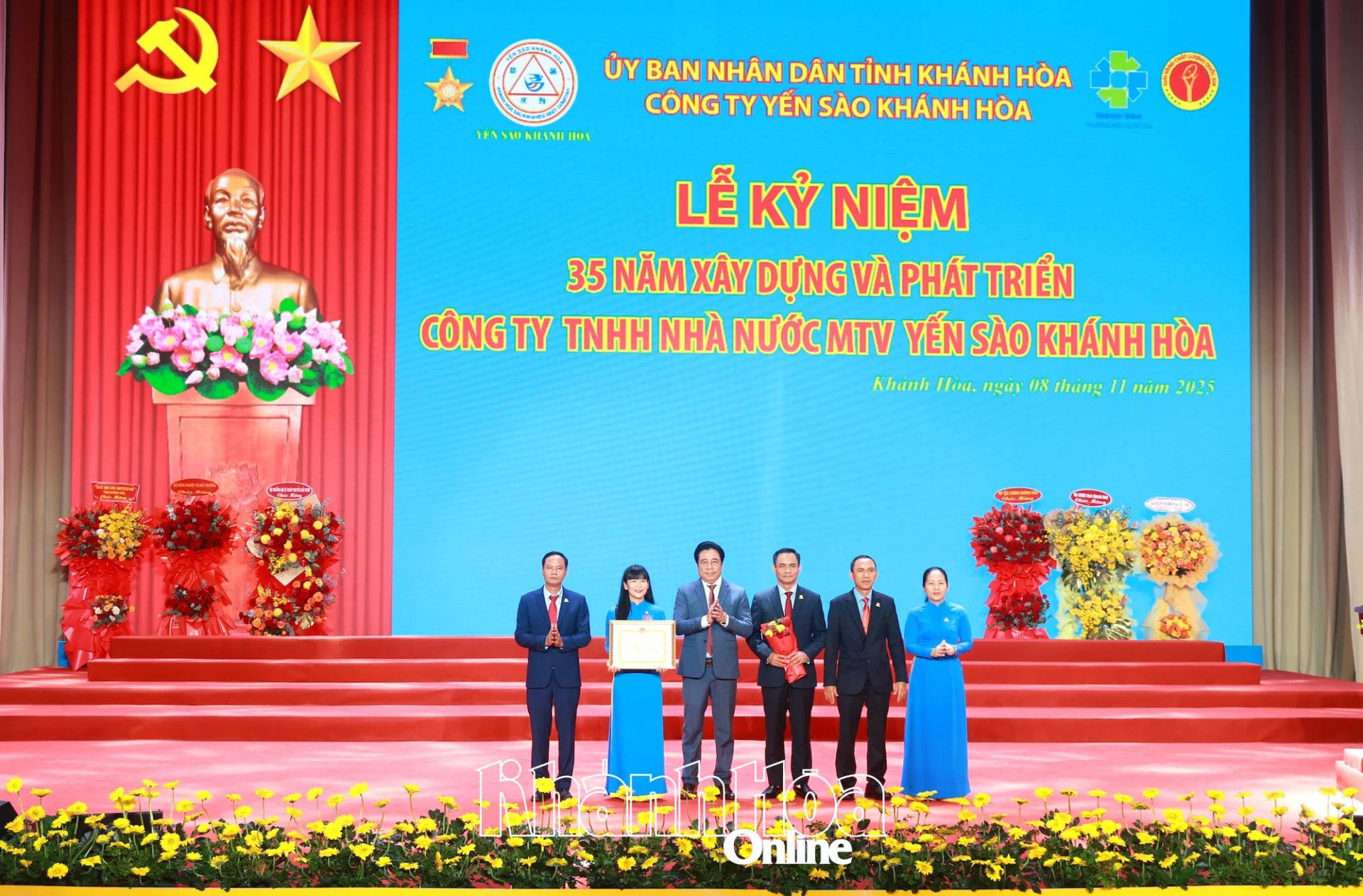 Sáng 8-11, tại Cung Văn hóa thiếu nhi tỉnh Khánh Hòa, Công ty TNHH Nhà nước Một thành viên Yến sào Khánh Hòa (Công ty Yến sào Khánh Hòa) tổ chức Lễ kỷ niệm 35 năm Ngày thành lập (9-11-1990 - 9-11-2025). Dự lễ có các đồng chí: Phùng Đức Tiến - Thứ trưởng Bộ Nông nghiệp và Môi trường; Nguyễn Khắc Toàn - Phó Bí thư Tỉnh ủy, Chủ tịch UBND tỉnh; Nguyễn Khắc Hà - Phó Bí thư Tỉnh ủy, Chủ tịch Ủy ban MTTQ Việt Nam tỉnh; các đồng chí lãnh đạo, nguyên lãnh đạo tỉnh qua các thời kỳ; lãnh đạo các sở, ban, ngành, lực lượng vũ trang; lãnh đạo, nguyên lãnh đạo công ty qua các thời kỳ và gần 700 cán bộ, công nhân viên đại diện cho hơn 4.000 cán bộ, công nhân viên toàn công ty.