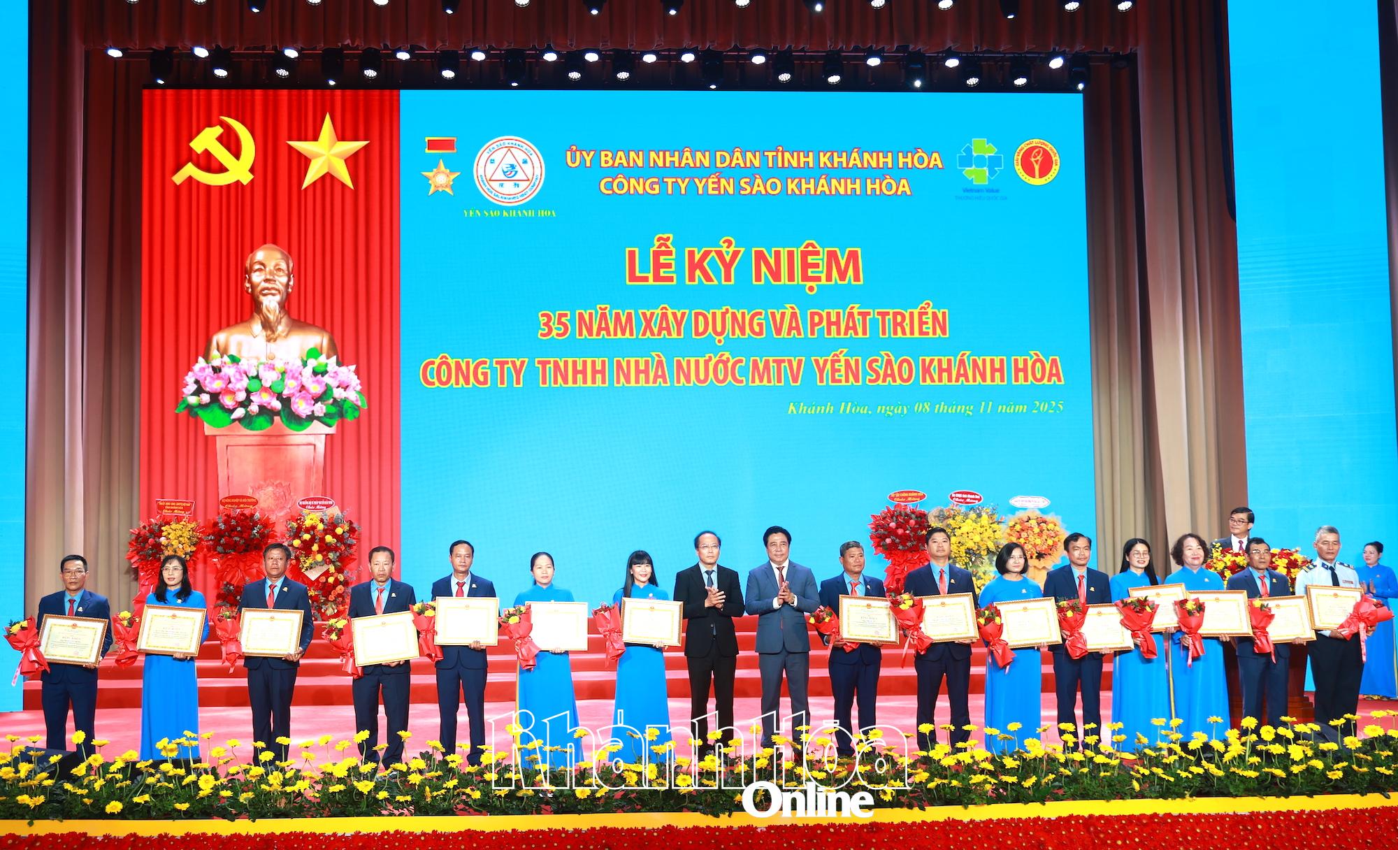 Nhân dịp này, Thủ tướng Chính phủ đã tặng bằng khen cho 9 cá nhân của Công ty Yến sào Khánh Hòa có thành tích tiêu biểu; Chủ tịch UBND tỉnh Khánh Hòa tặng bằng khen cho 7 tập thể và 15 cá nhân.