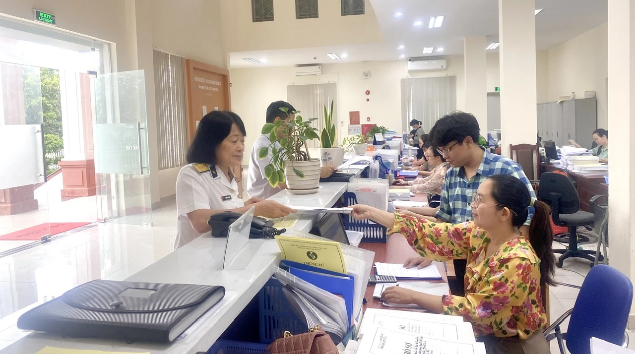 | Khách hàng giao dịch tại Phòng Giao dịch số 1, Kho bạc Nhà nước khu vực XIV. |