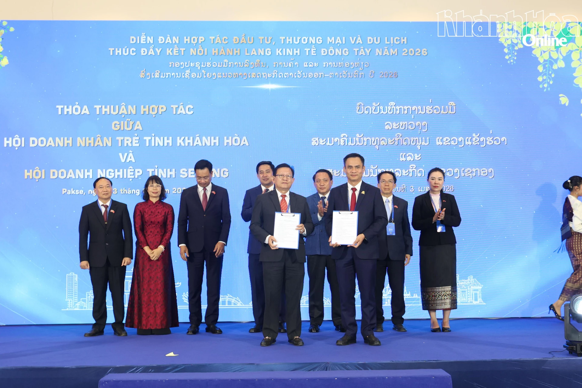 Chiều 3-4, trong khuôn khổ Diễn đàn Hợp tác đầu tư, thương mại và du lịch thúc đẩy kết nối Hành lang kinh tế Đông - Tây (EWEC) 2026 được tổ chức tại TP. Pakse (tỉnh Champasak, Lào), Hội Doanh nhân trẻ tỉnh Khánh Hòa thực hiện ký kết 3 biên bản ghi nhớ hợp tác (MOU).