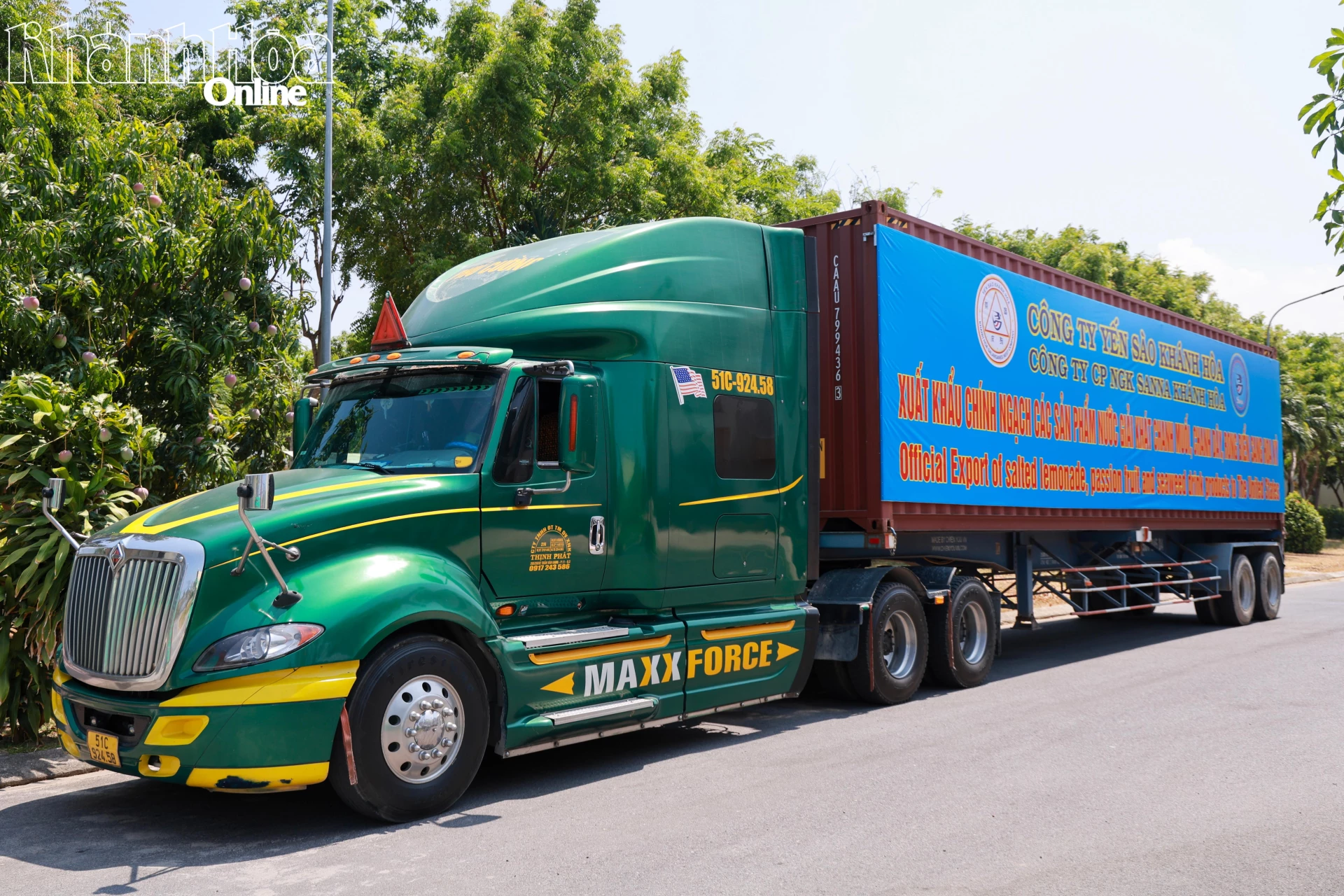 | Xe container chở lô hàng đầu tiên sang thị trường Hoa Kỳ. |
