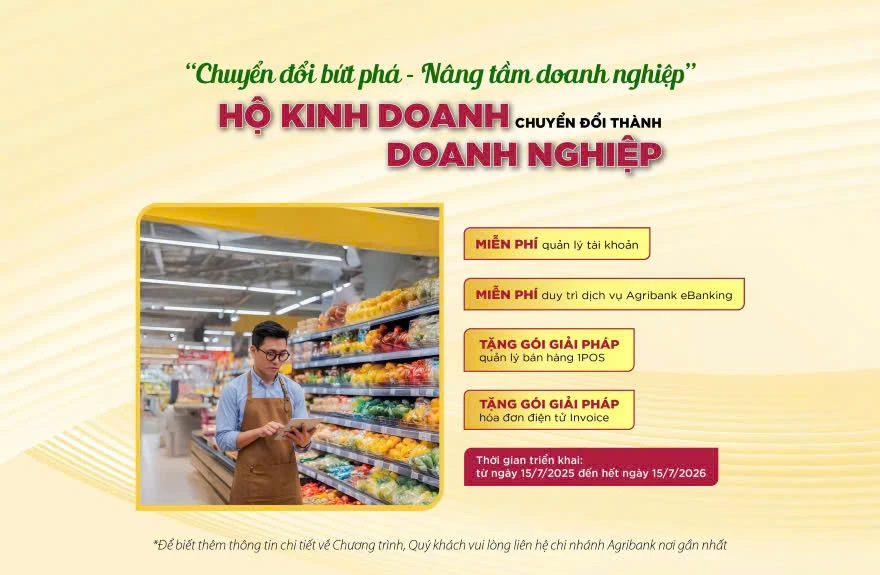 Nghị quyết số 68 ngày 4-5-2025 của Bộ Chính trị về phát triển kinh tế tư nhân một lần nữa nhấn mạnh vai trò, tầm quan trọng của lực lượng này trong nền kinh tế Việt Nam. Đồng thời, Nghị quyết 68 cũng khuyến khích các ngân hàng trở thành đối tác chiến lược của doanh nghiệp tư nhân, tạo điều kiện để doanh nghiệp tiếp cận vốn, chuyển đổi số và phát triển bền vững. Đồng hành, hỗ trợ các hộ kinh doanh cá thể chuyển đổi mô hình hoạt động và nâng cao năng lực cạnh tranh theo Nghị quyết 68, Agribank kịp thời triển khai chương trình ưu đãi “Chuyển đổi bứt phá - Nâng tầm doanh nghiệp”. Chương trình diễn ra từ ngày 15-7-2025 đến hết ngày 15-7-2026, dành cho hộ kinh doanh thực hiện chuyển đổi thành doanh nghiệp từ ngày 1-1-2025 và doanh nghiệp lần đầu mở tài khoản thanh toán tại Agribank. Trong giai đoạn chuyển đổi mô hình hoạt động, khách hàng tham gia chương trình được nhận nhiều ưu đãi thiết thực như: Miễn phí quản lý tài khoản, miễn phí dịch vụ ngân hàng điện tử (Agribank Corporate eBanking), tặng gói Giải pháp quản lý bán hàng 1POS và Giải pháp hóa đơn điện tử Invoice giúp các đơn vị nâng cao hiệu quả hoạt động và quản trị tài chính một cách hiệu quả, thuận tiện, hiện đại hơn. Bên cạnh đó, doanh nghiệp nhỏ và vừa còn nhận được các ưu đãi lãi suất vay vốn với mức giảm 0,8%/năm - 1,2%/năm so với sàn lãi suất cho vay thông thường, hình thức cấp vốn linh hoạt phù hợp với nhu cầu vốn và mô hình sản xuất kinh doanh của khách hàng.