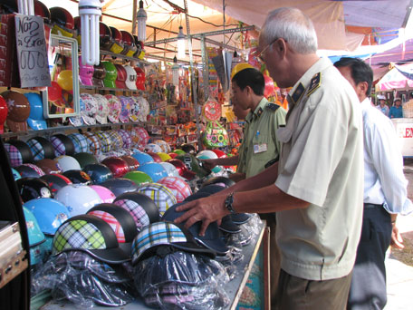 | Mũ bảo hiểm được bày bán không có tem hợp chuẩn CR. |