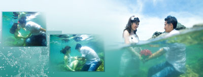 Chụp ảnh cưới ngoại cảnh đang là mốt. Tuy nhiên, để hút khách hàng, nhiều studio đã không ngại đầu tư máy móc, trang thiết bị và chịu khó săn lùng nhiều cảnh “độc” để tạo nên những album đầy tính nghệ thuật. Được biết, tại Nha Trang, chỉ có studio Quốc Toản là có dịch vụ chụp ảnh cưới dưới nước. Để làm được điều này, anh Quốc Toản đã đầu tư một bộ máy ảnh thuộc hàng “khủng” để có thể lặn dưới nước phục vụ cô dâu, chú rể. Nếu như bạn thích cảm giác phiêu lưu và muốn trao nhẫn cưới cho cô dâu ở đáy đại dương với những đàn cá đủ sắc màu bơi lượn xung quanh, sao không thử làm một album độc đáo như thế để ghi lại những khoảnh khắc đáng nhớ này?