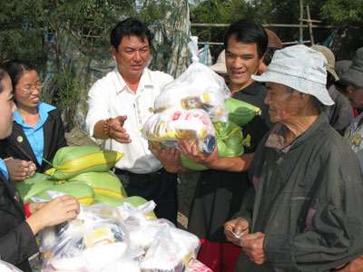 | Lãnh đạo CMC trao quà Tết cho người dân đag sống tại khu vực bãi rác phía Bắc TP. Nha Trang. |