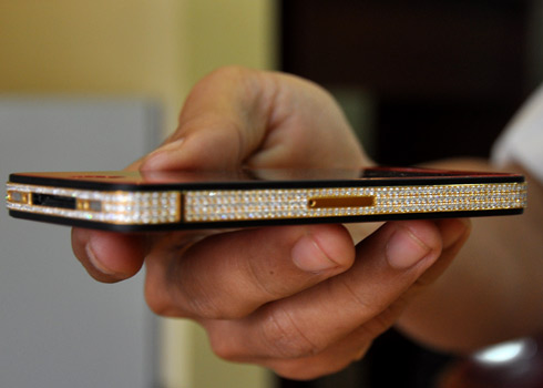 Một nữ doanh nhân tại Hà Nội đã đặt hàng biến điện thoại mình thành hàng độc: chiếc iPhone 4 được "lột áo", thay bằng vỏ màu đỏ nhập từ Mỹ, ngoài ra viền máy còn đính 466 viên kim cương tổng hợp Swarovski từ Áo.