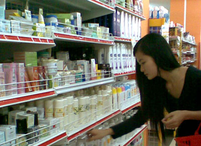 Tại các điểm bán mỹ phẩm, các sản phẩm dành cho tóc đa dạng hơn nhiều so với các tiệm làm tóc. Ghé vào các cửa hàng mỹ phẩm khu vực chợ Đầm, TP. Nha Trang, khách hàng hỏi mua thuốc duỗi tóc, nhuộm tóc… với giá nào cũng có. Đối với hàng “xịn” nhập từ Mỹ, Nhật, Ý, Hàn Quốc…, giá có thể lên tới vài trăm ngàn đồng, loại của Trung Quốc, Thái Lan… chỉ từ 20.000 - 80.000 đồng/sản phẩm. Đặc biệt, có những loại thuốc nhuộm tóc của Trung Quốc giá rất rẻ, chỉ từ 9.000 - 12.000 đồng/lọ. Đưa cho tôi xem một tuýp thuốc nhuộm tóc, người bán hàng quảng cáo đây là hàng Thái Lan được ưa chuộng, bởi sản phẩm chứa nhiều chất dưỡng tóc, giúp tóc nhuộm giữ được vẻ mềm, mượt, giá chỉ 50.000 đồng. Tuy nhiên, trên bao bì lọ sản phẩm này chỉ có vài dòng chữ Thái Lan, hoàn toàn không có bất cứ hướng dẫn sử dụng nào bằng tiếng Việt, cũng không đề hạn sử dụng. Nhiều sản phẩm khác có nhãn hiệu khá nổi tiếng nhưng giá chỉ bằng 1/3 - 1/2 so với hàng chính hãng. Thực tế hiện nay, mỹ phẩm dành cho tóc nói riêng và mỹ phẩm nói chung bị làm giả, làm nhái rất tinh vi, được nhập lậu qua đường tiểâu ngạch phân tán trôi nổi trên thị trường, người tiêu dùng khó phân biệt được. Từ đầu năm đến nay, Chi cục Quản lý thị trường tỉnh đã phát hiện và tịch thu gần 200 lọ sản phẩm thuốc duỗi tóc, nhuộm tóc nhập lậu trên toàn tỉnh.