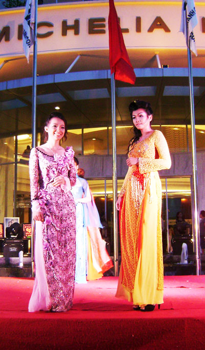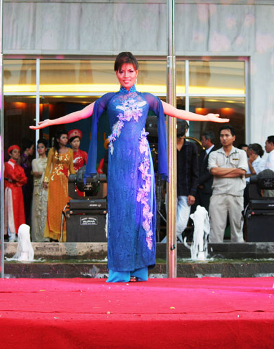 Có lẽ nổi bật và gây ấn tượng nhất trong BST áo dài cưới lần này là chiếc áo dài cưới bằng chất liệu gấm, màu đỏ truyền thống có chiều dài 10m, được thêu hình con rồng và phượng hòa quyện vào nhau. “Tôi đã ấp ủ ý tưởng thiết kế chiếc áo này từ lâu, và lần này mong muốn mang đến Festival Biển 2011 một sản phẩm mới lạ phục vụ người dân và du khách tham quan. Trong quá trình thiết kế chiếc áo này, điểm khó nhất là làm sao giúp người mặc thoải mái trong di chuyển và biểu diễn” - NTK Võ Thành Long chia sẻ.