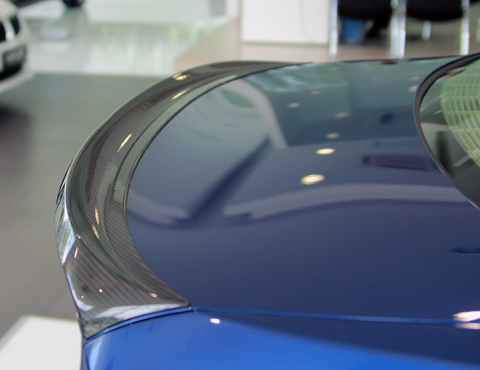 | Đuôi cá carbon nằm trên nắp capô sau. |