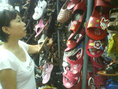 Tuy không phải mùa cao điểm nhưng tại các gian hàng thời trang giày, dép ở chợ Xóm Mới, giày, dép trẻ em được trưng bày rất đẹp, màu sắc bắt mắt, từ những đôi giày thể thao cho đến những đôi sandal hay dép bằng nhựa mềm, giày bít gót đính nơ, vải kiểu bụi… Chị Lan Anh (đường Yersin, Nha Trang) chia sẻ: “Vốn dĩ nhìn thời trang giày, dép, áo quần ngộ nghĩnh của các bé đã thấy muốn mua rồi, bây giờ ở giữa một “rừng” giày, dép phong phú và bắt mắt thế này, đôi nào tôi cũng thấy đẹp, cũng muốn “khuân” về nhà cho con”.