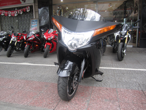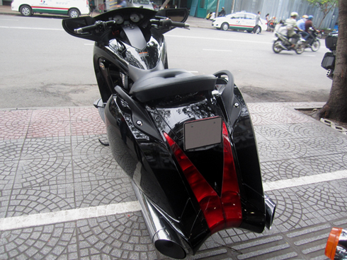 Vè trước cách điệu dạng cánh chim ôm gọn cả gương chiếu hậu, các đồng hồ hiển thị trạng thái và hai loa lớn.