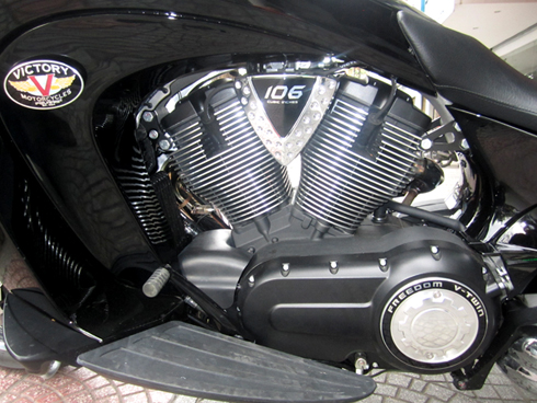 Vision 8-Ball sở hữu động cơ mới Freedom® 106/6 V-Twin. Con số 106 thể hiện inch khối (tương đương 1.737 phân khối). Công suất 97 mã lực, mô-men xoắn cực đại 153 Nm. Hộp số 6 cấp.