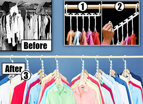 Móc treo quần áo đa năng là giải pháp hoàn hảo nhất với những tủ quần áo chật cứng. Nó có thể giúp bạn tiết kiệm được một khoảng diện tích rất lớn trong chiếc tủ nhỏ xinh. Móc còn khéo léo sắp xếp quần áo của bạn một cách ngăn nắp, gọn gàng.