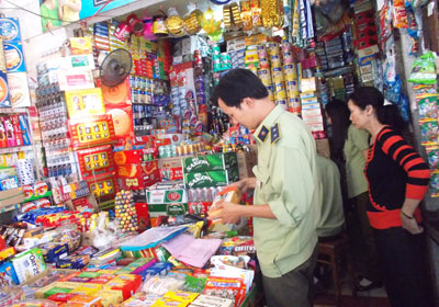 | Lực lượng Quản lý thị trường kiểm tra hàng hóa tại các chợ |