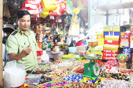 Cũng như nhiều năm trước, tại các sạp bánh kẹo vẫn diễn ra tình trạng trưng bày theo kiểu đổ đống chứ không chứa trong bao bì chính hãng. Khi đoàn kiểm tra đề nghị cho xem thùng hàng bánh kẹo để đối chiếu, kiểm tra hàng nhái, hàng lậu thì các hộ kinh doanh đều nói do không gian sạp hàng chật chội nên sau khi khui hàng đều bán thùng hàng hoặc đóng hàng cho khách mang đi. Đặc biệt, một vài hộ tiểu thương năm trước đã được đoàn kiểm tra nhắc nhở lưu giữ lại thùng hàng, giấy tờ, hóa đơn để kiểm tra, truy xuất nguồn gốc hàng hóa nhưng năm nay vẫn tái diễn tình trạng này.