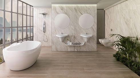 Đã sở hữu một không gian tiếp khách và căn bếp như ý, gia chủ ắt sẽ không thể quên chăm chút phòng tắm. Bồn tắm Dune - Antoniolupi từ Italy được sản xuất từ vật liệu Cristalplant độc quyền từ hãng - một loại nhựa acrylic cao cấp có bề mặt giống đá tự nhiên, dễ dàng vệ sinh, chống bám bẩn, trầy xước. Màu sắc đa dạng được thiết kế với độ nghiêng các cạnh khác nhau cho gia chủ tư thế thoải mái và thư giãn khi sử dụng.