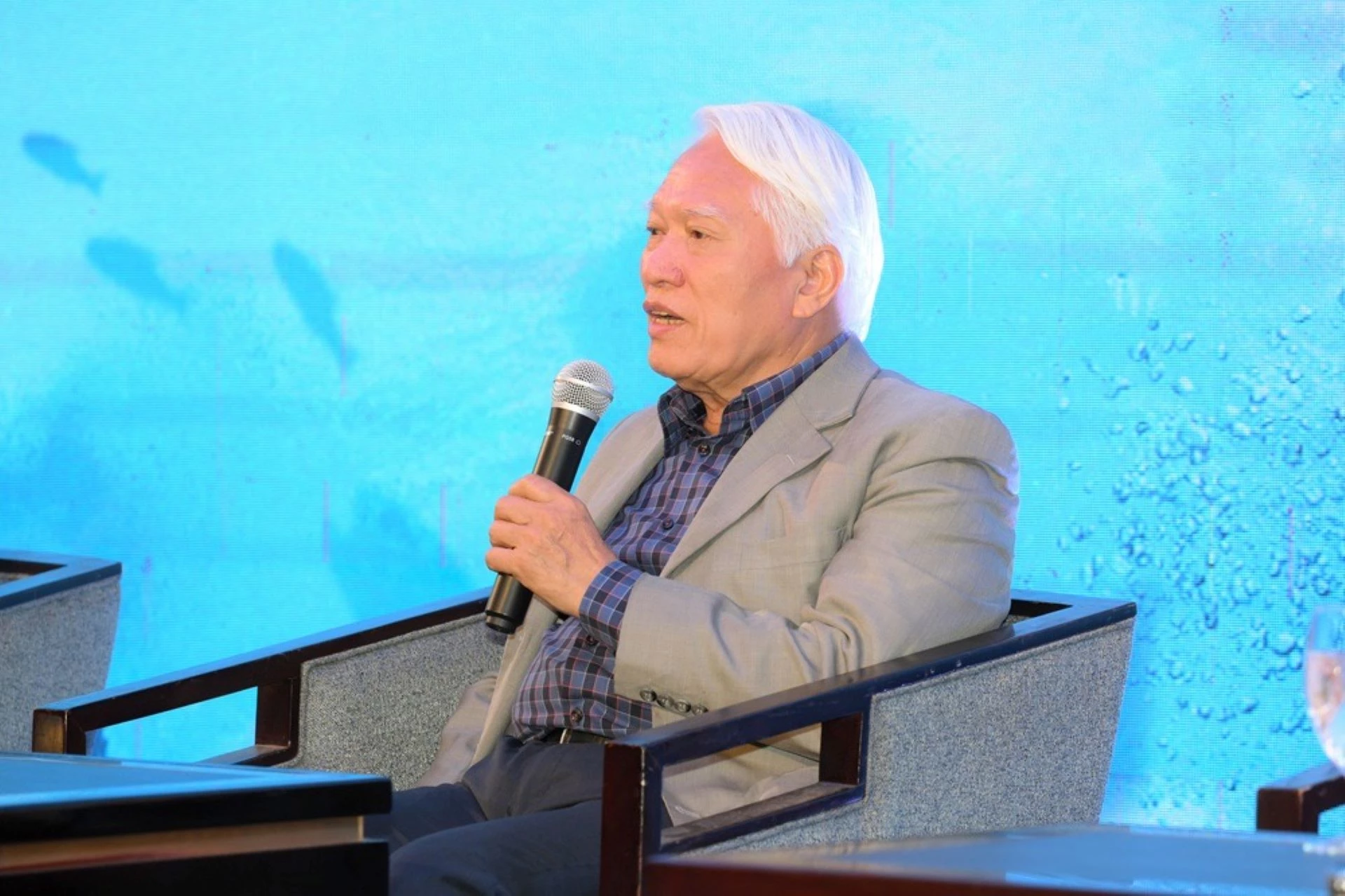 | PGS.TS. Nguyễn Chu Hồi, Phó chủ tịch thường trực Hội thủy sản Việt Nam (VINAFIS), cùng các chuyên gia trao đổi chuyên sâu về các giải pháp đổi mới sáng tạo xây dựng chuỗi cung ứng xanh cho ngành. |