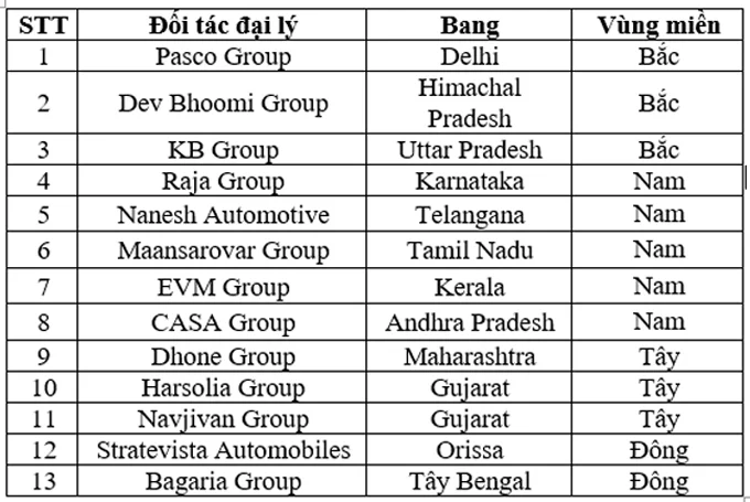 Trong khuôn khổ chiến lược mở rộng tại Ấn Độ, VinFast đã ký kết thỏa thuận hợp tác với 13 đại lý hàng đầu để triển khai 32 cửa hàng tại 27 thành phố trên toàn quốc. Hợp tác này thể hiện cam kết của VinFast trong việc xây dựng mạng lưới 3S (Bán hàng - Dịch vụ - Phụ tùng) vững mạnh, đảm bảo sự hiện diện rộng khắp trên thị trường và tạo nền tảng cho sự kiện mở nhận cọc mẫu VF 6 và VF 7 dự kiến vào ngày 15-7.