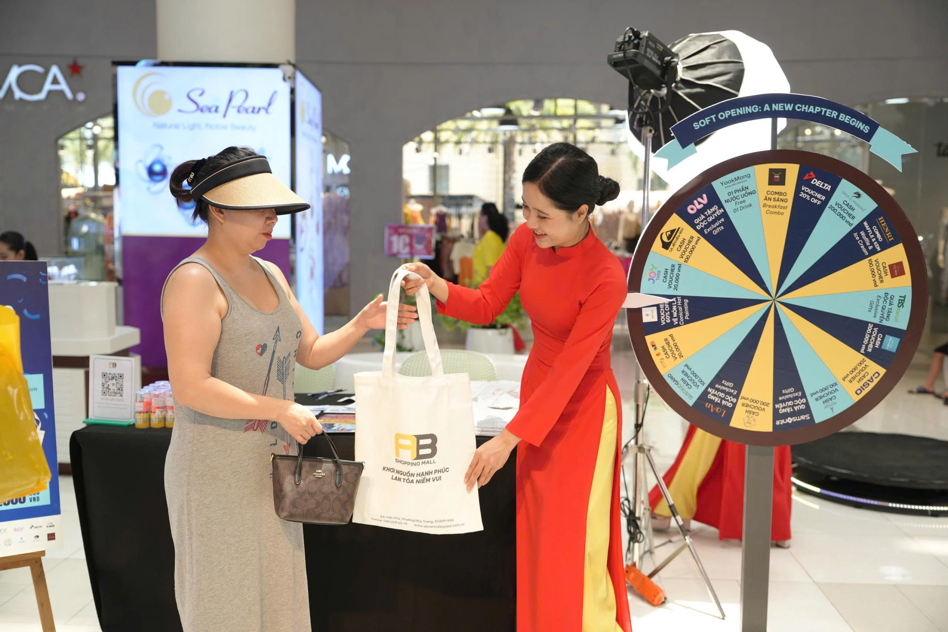 Hòa vào không khí lễ hội, chương trình ưu đãi mua sắm cũng được triển khai và nhận được sự quan tâm lớn từ khách hàng. Nhiều du khách đặc biệt yêu thích chiếc túi canvas phiên bản giới hạn in hình góc phố Nha Trang và tháp Trầm Hương - món quà mang đậm dấu ấn địa phương và cá tính riêng của A&B Shopping Mall.