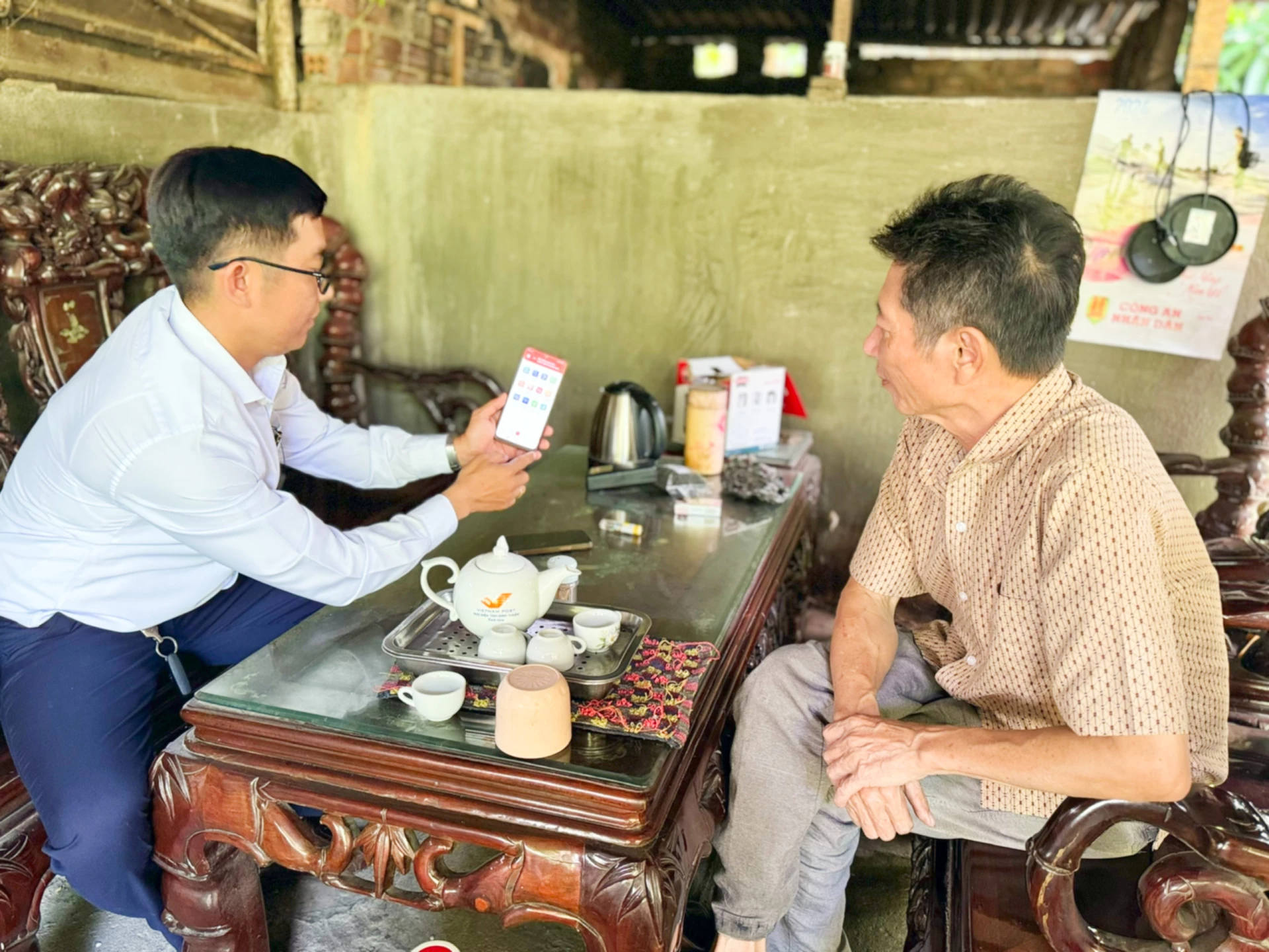 | Nhân viên Đội Quản lý điện Thuận Bắc hướng dẫn khách hàng sử dụng ứng dụng EVN CSKH. |