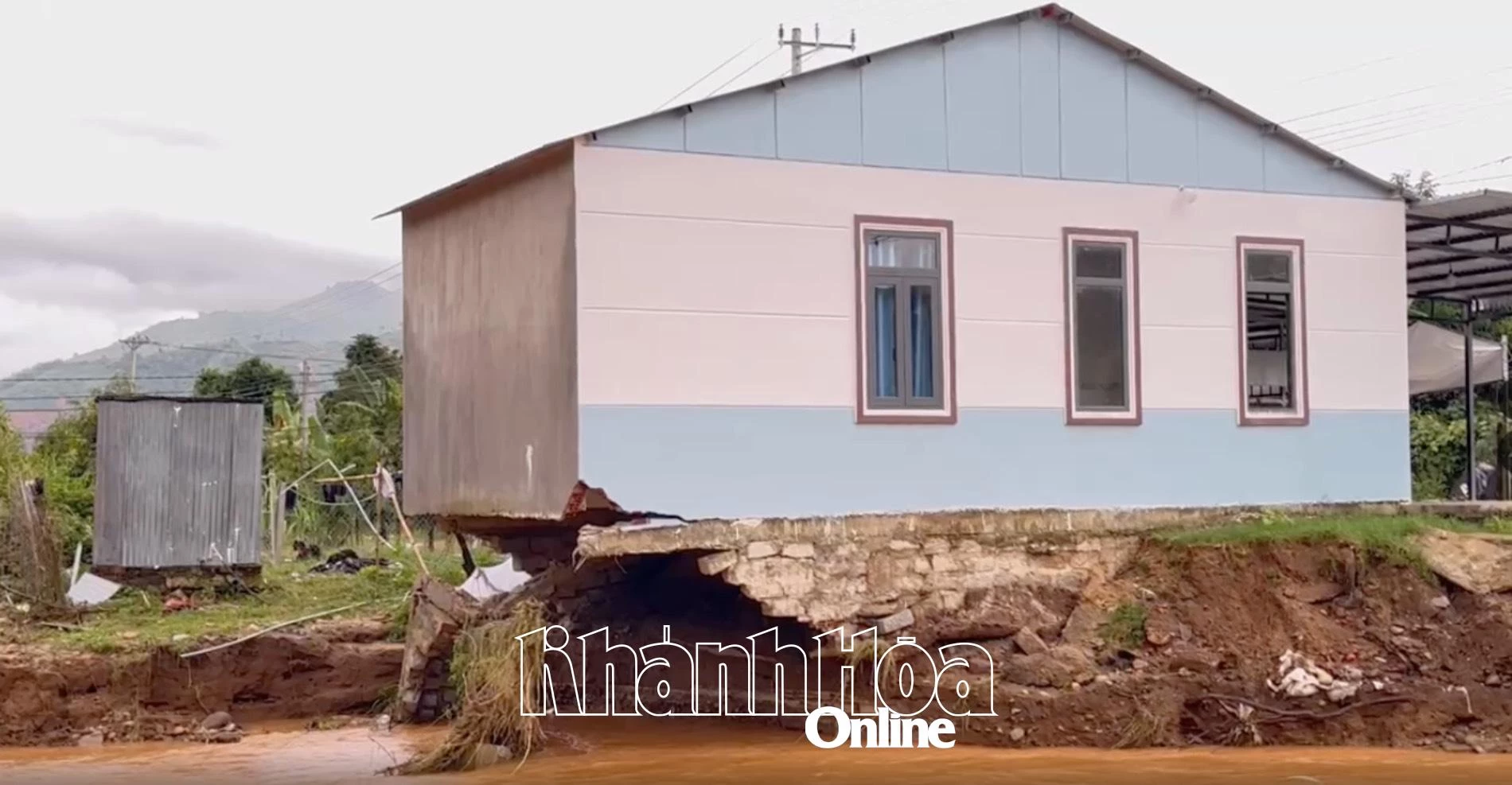 | Mội căn nhà ở xã Khánh Sơn bị sạt lở. |