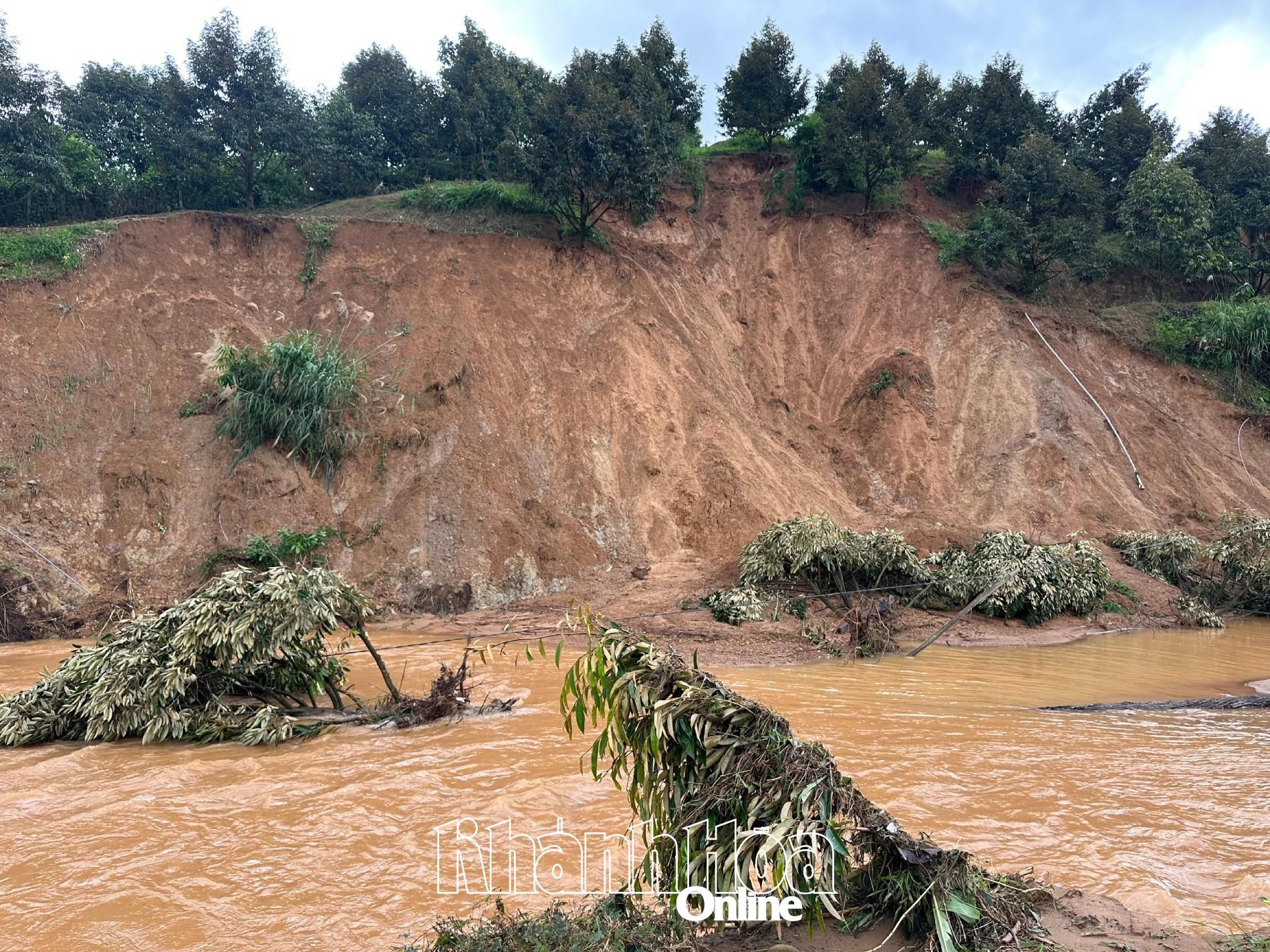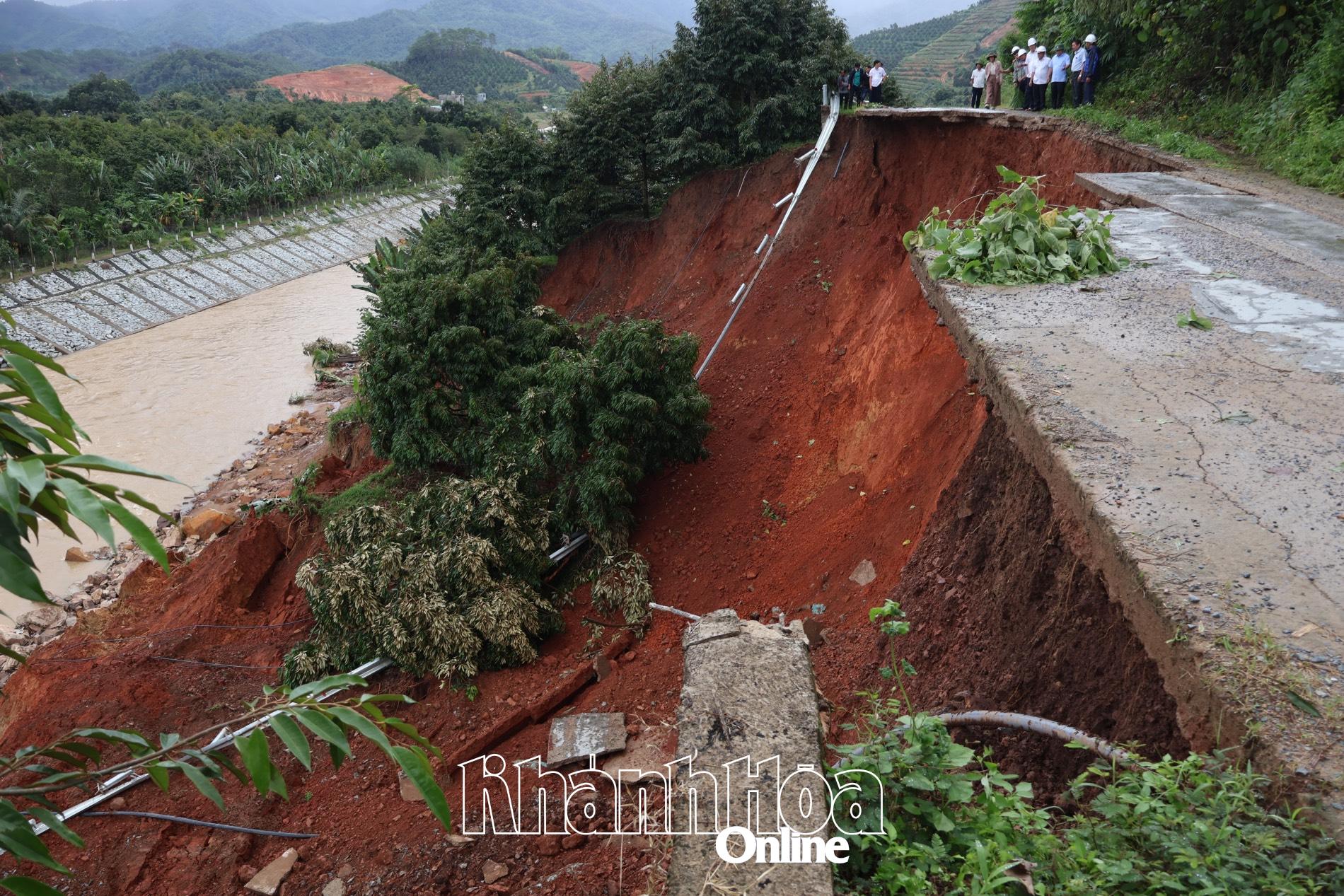 | Đường ở thôn Tà Gụ (vào Khu du lịch thác Tà Gụ), xã Khánh Sơn bị sạt lở. |