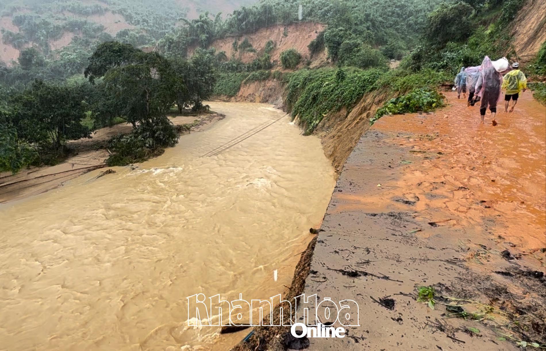 | Đường liên thôn Hòn Dung - Tà Gụ (xã Khánh Sơn) sạt lở. |