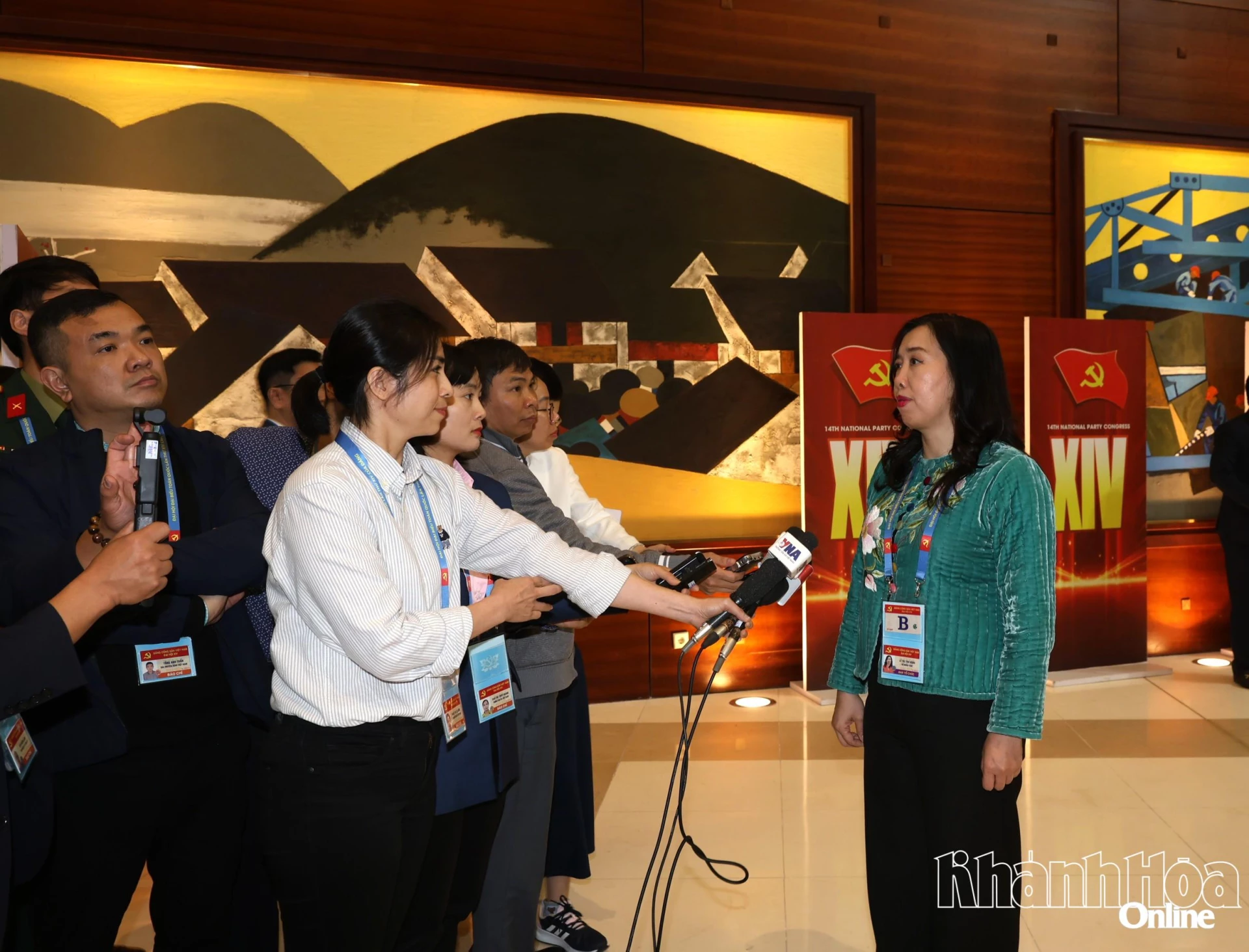 | Phóng viên Báo và Phát thanh truyền hình Khánh Hòa tác nghiệp tại Trung tâm Báo chí Đại hội XIV của Đảng. |