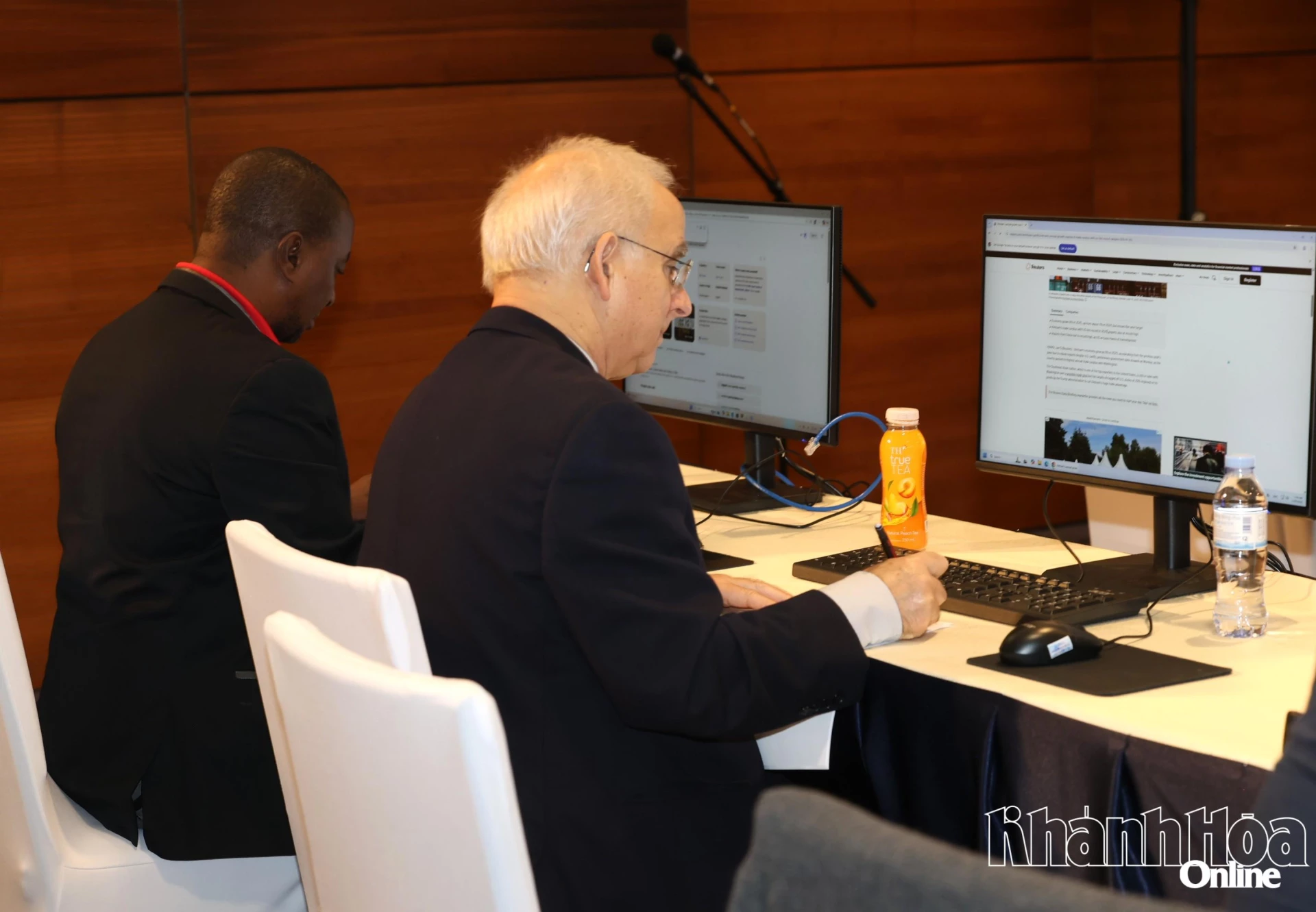 | Một nhà báo quốc tế theo dõi phiên khai mạc và ghi chép lại các thông tin. |