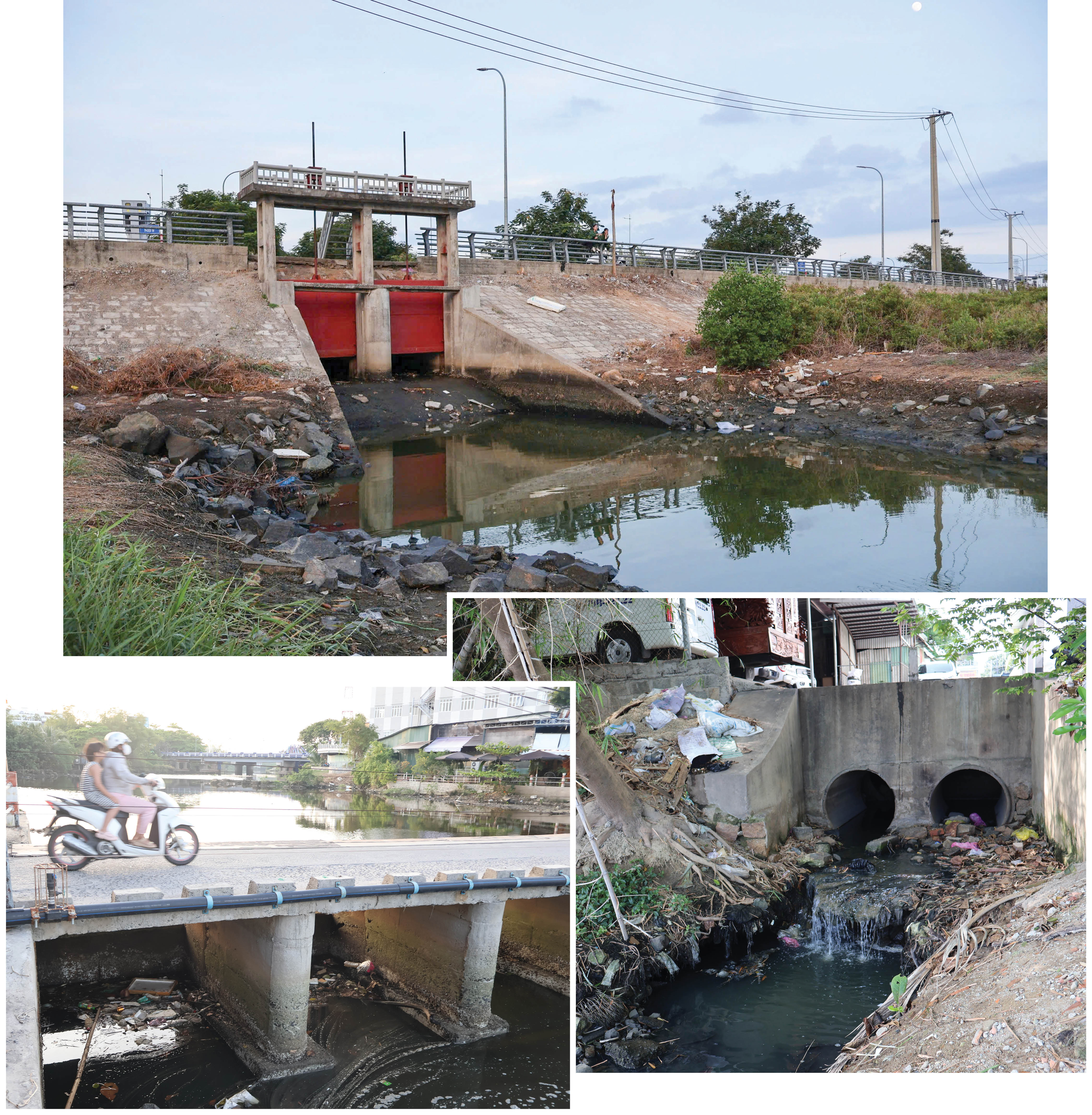 Theo ghi nhận của phóng viên, không chỉ riêng các vị trí nêu trên, hiện nay, tại những cửa xả dọc các khu tái định cư, Khu đô thị Thái Hưng dọc sông Quán Trường qua xã Vĩnh Thái và phường Phước Hải nước bốc mùi hôi vẫn đang chảy trực tiếp ra sông Quán Trường.